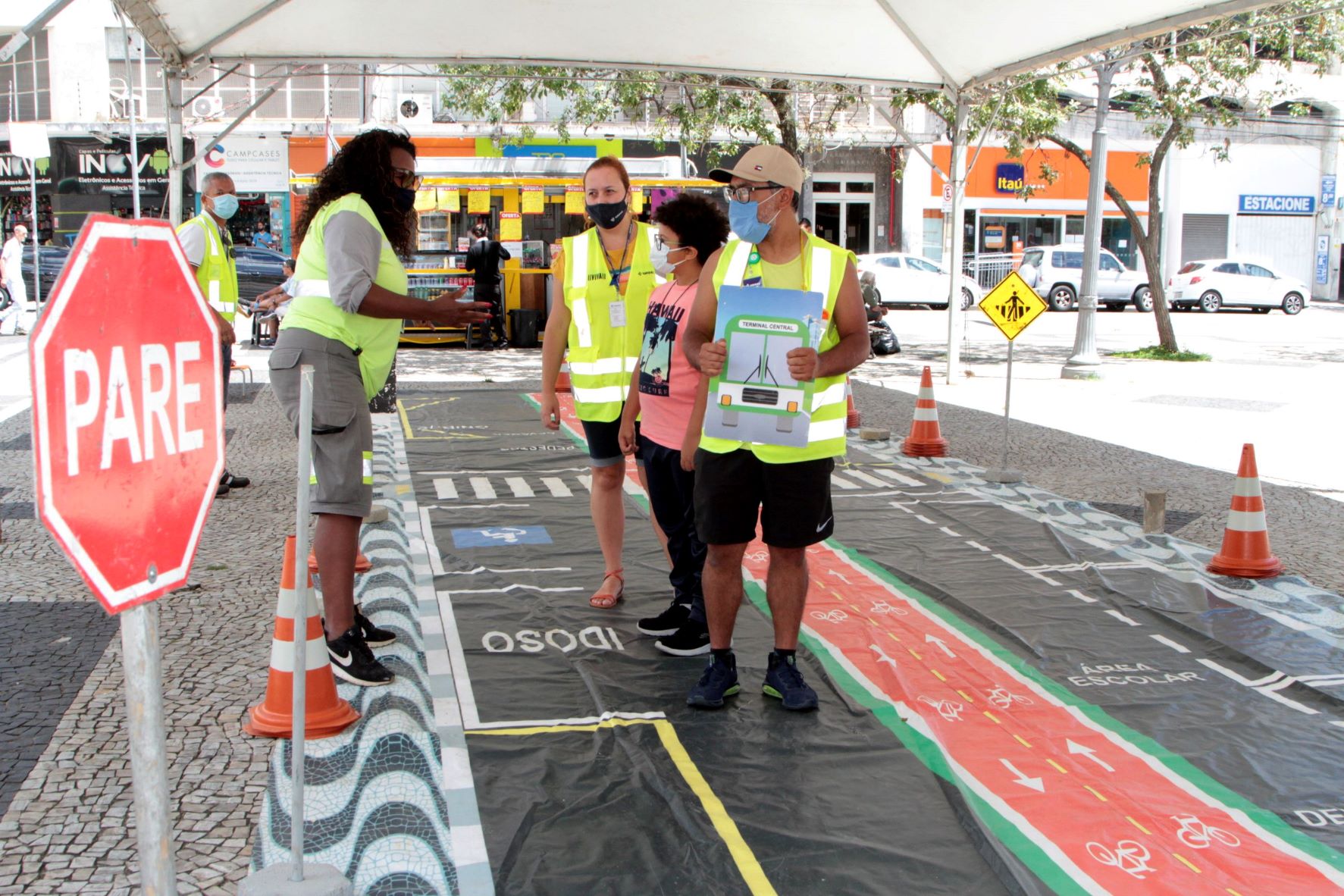 Educadores da Empresa Municipal de Desenvolvimento de Campinas (Emdec) levaram ao Largo do Rosário no domingo (19/12) o Minicircuito de Trânsito, que orienta as crianças sobre trânsito seguro.