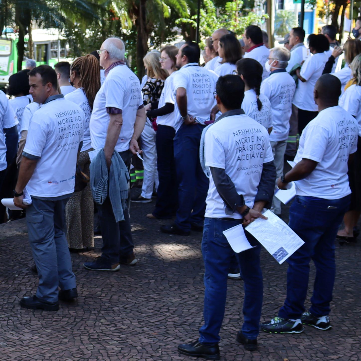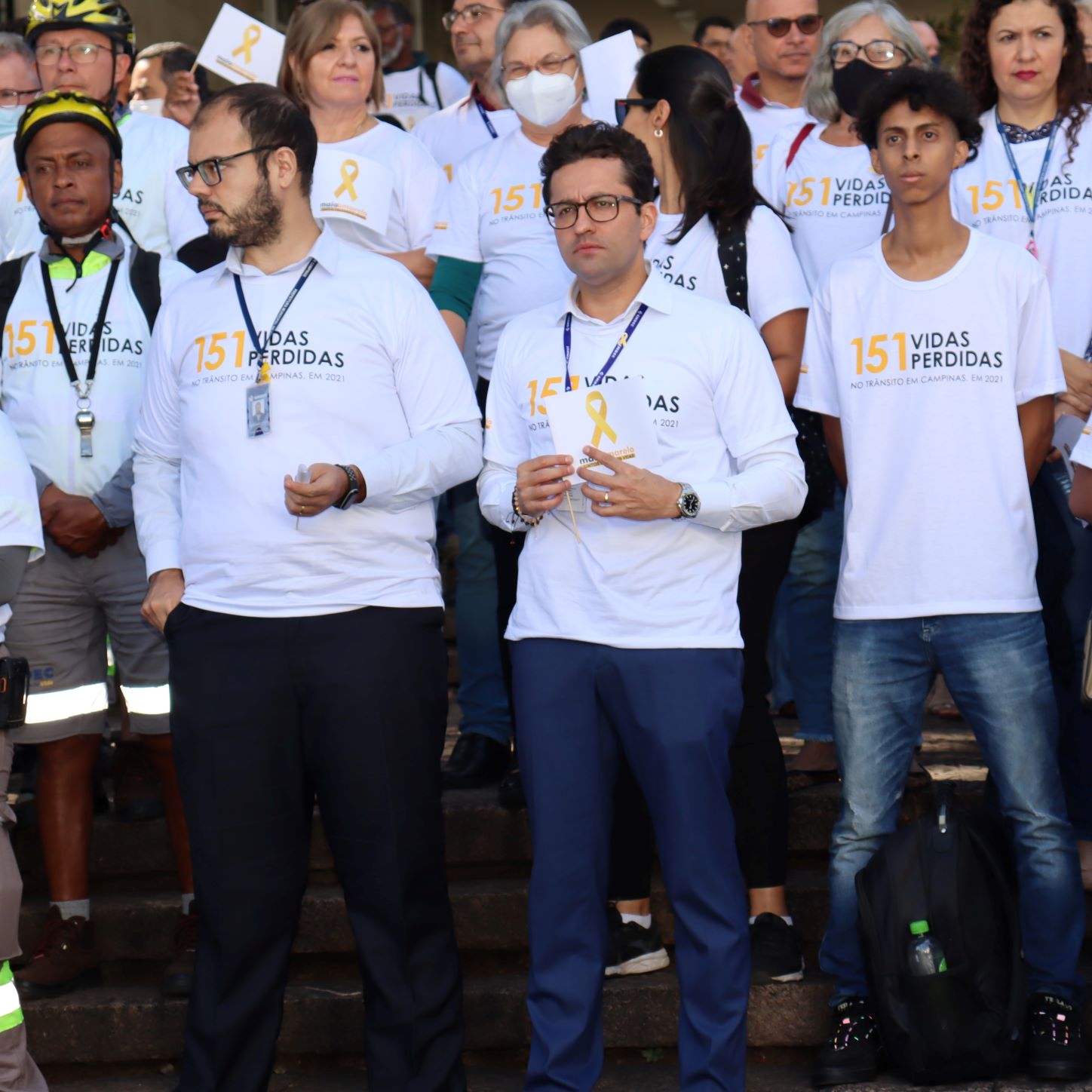 Um ato em 9 de maio em frente ao Paço Municipal homenageou as 151 vítimas fatais do trânsito de Campinas em 2021.