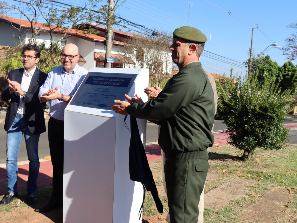 Para marcar a entrega, que faz parte das ações em comemoração ao aniversário de 249 anos de Campinas, o prefeito Dário Saadi gravou um vídeo, no local. “Nós continuamos ampliando, muito, as opções de rotas cicloviárias em Campinas. Ciclismo é esporte, é lazer, e significa também opção saudável de mobilidade urbana”, afirmou o prefeito antes do descerrar a placa comemorativa junto com o Comandante da Escola Preparatória de Cadetes do Exército (EsPCEx), Coronel Marcus Augusto Bastos Neuvald.