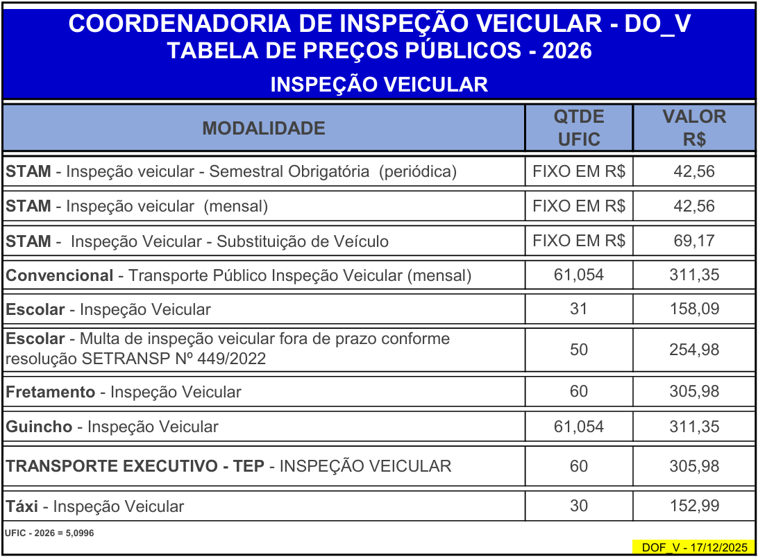 Página Principal  / Inspeção Veicular  / Taxas Inspeção Veicular - 2026