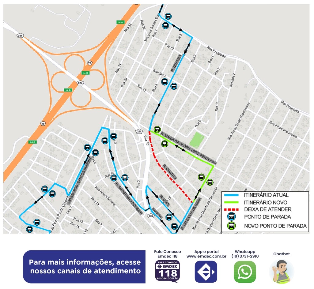 A medida determinada pela Empresa Municipal de Desenvolvimento de Campinas (Emdec) está relacionada ao avanço das obras de duplicação da rodovia Miguel Melhado de Campos (SP-324). O trajeto provisório era praticado desde janeiro no bairro.