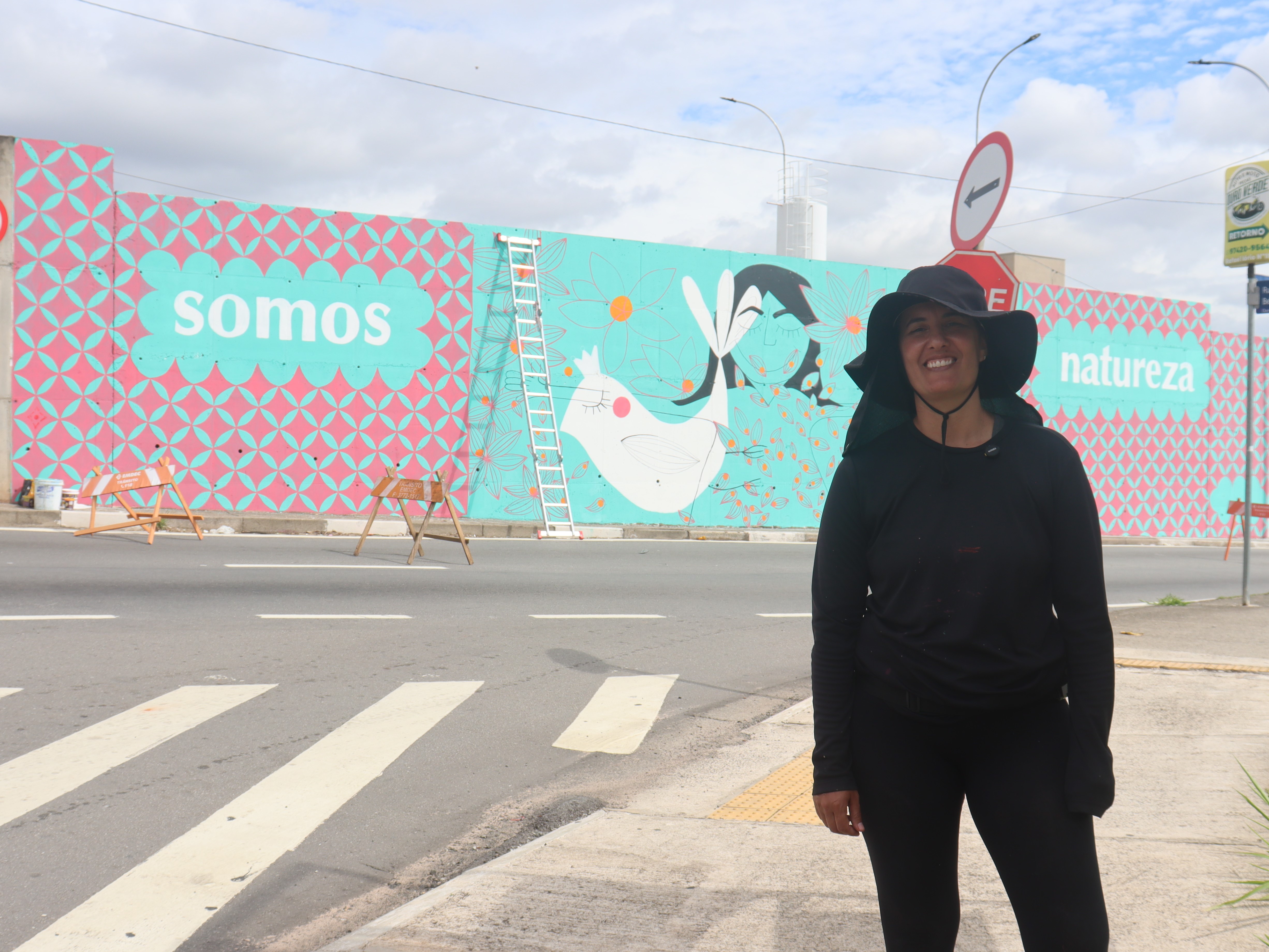Quem costuma passar pelo Terminal BRT Ouro Verde acaba de ganhar mais um painel do projeto BRT Arte, para inspirar o dia a dia. A multiartista Chris Quaglio realizou a pintura de painel no muro externo do espaço, em frente ao Hospital Ouro Verde, com inspiração na natureza e no incentivo a práticas sustentáveis.