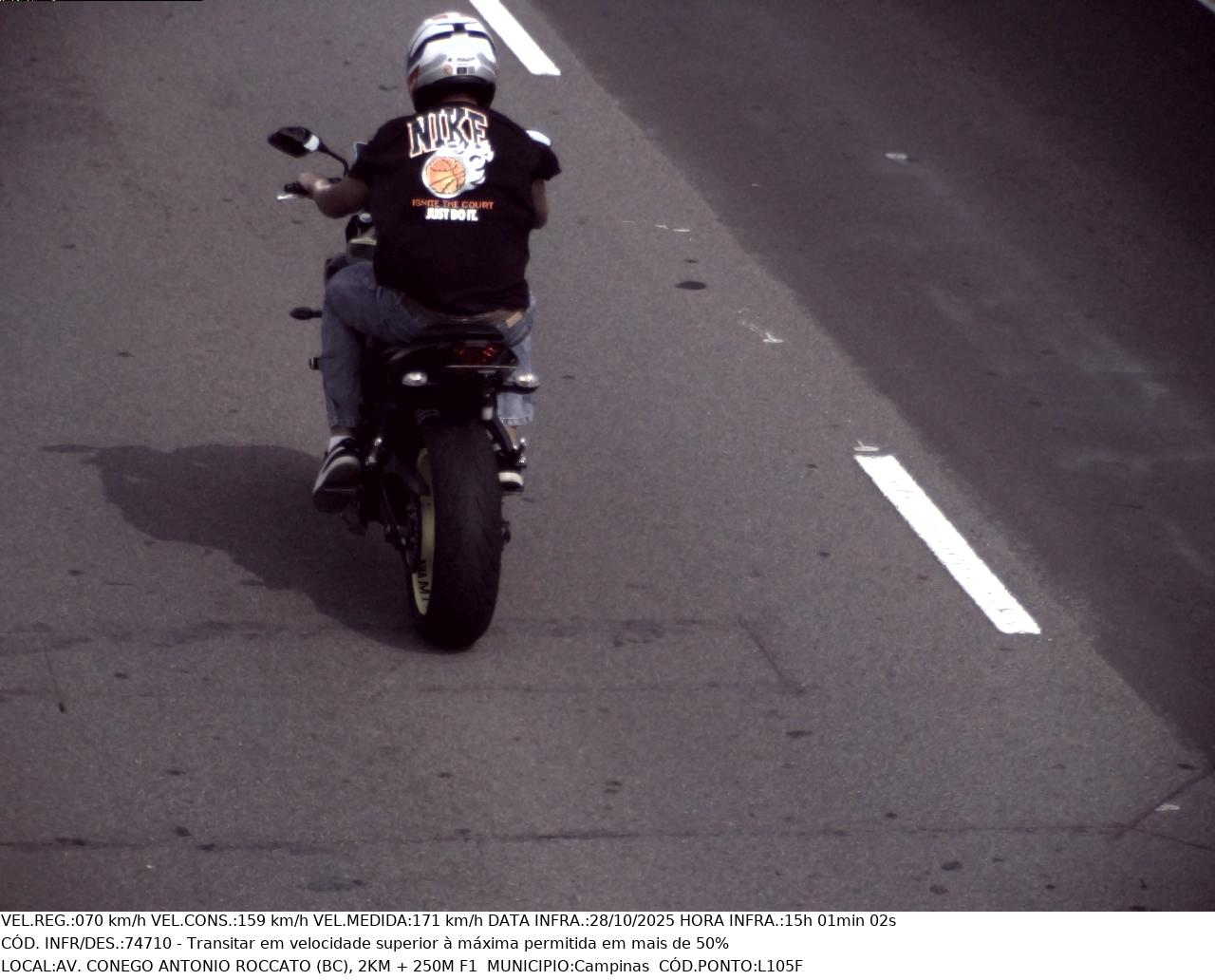 Imagem do radar mostra motociclista circulando a mais de 170 km/h na Cônego Roccatto