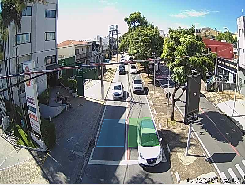 Na área mais próxima à linha de retenção, é onde o sistema projeta uma espécie de campo “virtual”, que permite a contagem dos veículos. Por isso, a recomendação é que, ao se aproximar de cruzamentos com semáforos “inteligentes”, os motoristas posicionem os veículos nessa área, junto à linha de retenção.