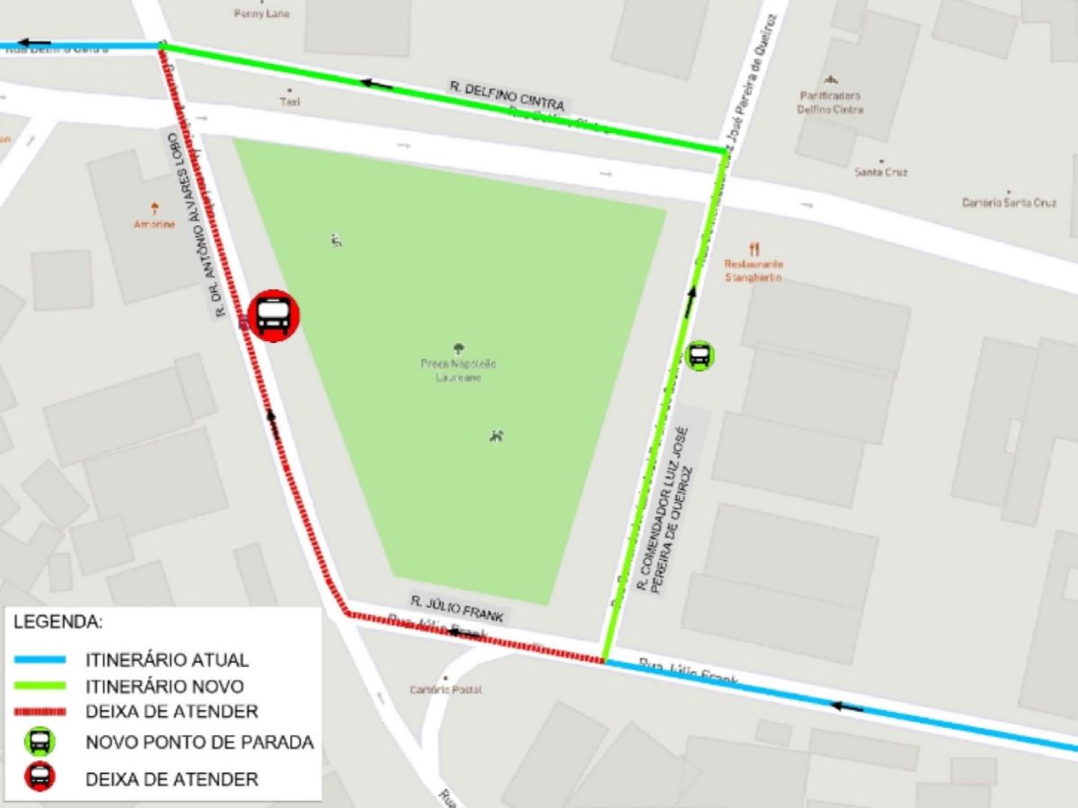 O sentido de circulação na rua Comendador Luiz José Pereira de Queiroz será invertido, ficando com tráfego da Júlio Frank de Arruda para a Delphino Cintra. O ponto de parada das linhas na rua Dr. Antônio Álvares Lobo será desativado. E um novo local de embarque / desembarque será implantado na rua Comendador Luiz José Pereira de Queiroz, anterior ao cruzamento com a rua Delphino Cintra.