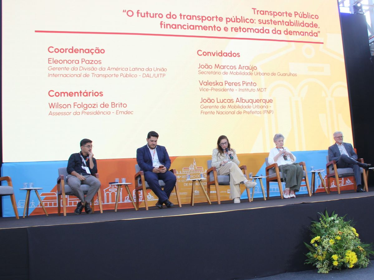 No início das trabalhos do período da tarde da 95ª Reunião do Fórum Paulista ocorreu a realização do Painel 3: Transporte Público - “O futuro do transporte público: sustentabilidade, financiamento e retomada da demanda”. A coordenação foi de Eleonora Pazos, gerente da Divisão da América Latina da União Internacional de Transporte Público (DAL/UITP). Um dos assuntos abordados foi como as cidades podem se preparar em transparência de dados no transporte público para o futuro pós Marco Legal.