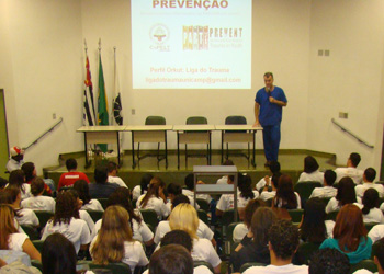 Também são apresentados vídeos e os alunos têm a oportunidade de conversar com pacientes vítimas de acidentes e que apresentam graves sequelas.