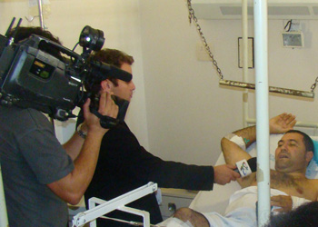Na visita à Enfermaria Ortopédica, os alunos conheceram o motorista de diretoria João Batista Gonçalves, 41. Gonçalves está internado no HC desde o último domingo, 21. Ele voltava de uma festa de confraternização de fim de ano, realizada pela empresa em que trabalha, quando sofreu um grave acidente de moto.