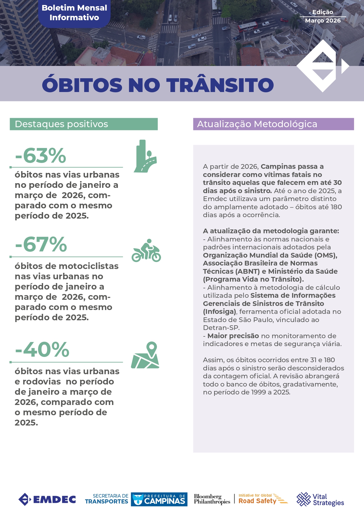 Os materiais a seguir trazem dados baseados na metodologia utilizada pela Emdec até 2025, que considerava como vítimas fatais no trânsito aquelas que faleciam em até 180 dias após o sinistro.